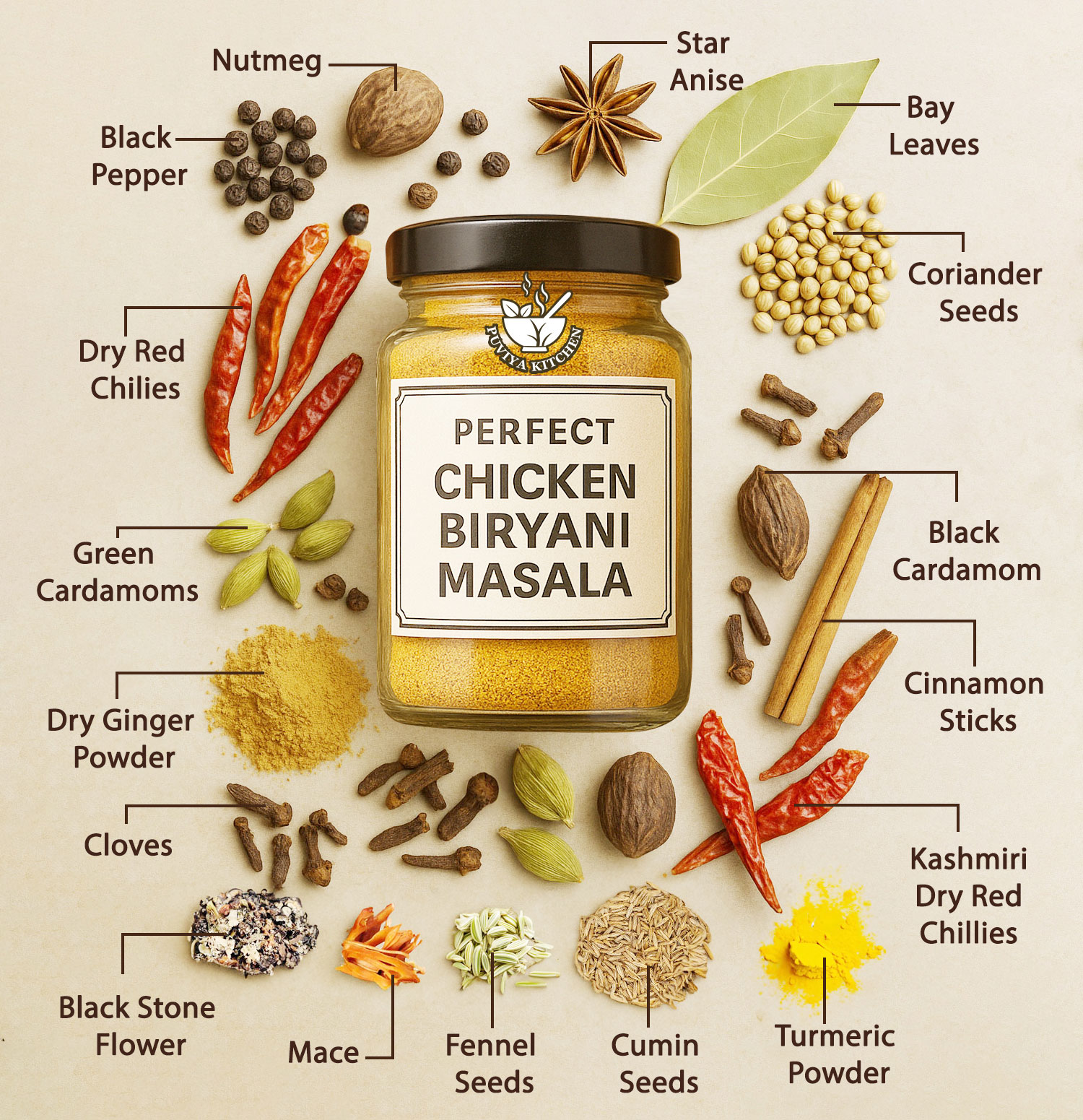 Take your biryani to the next level with this aromatic and flavorful Chicken Biryani Masala Powder. Made with freshly roasted spices, this homemade masala brings the same rich, royal, and restaurant-style taste you get in authentic biryanis. Perfect for chicken, mutton, egg, or even veg biryani!